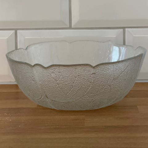 Glasskål med naturmotiv.