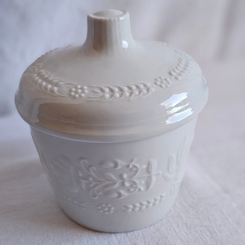 Selger ubrukt sukkerskål med lokk fra Wedgwood Intaglio serie. Sukkerskål 450,- Nypris ca 900,-