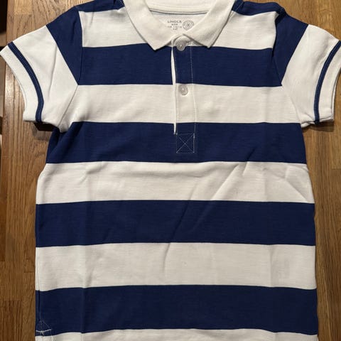 Pen blå og hvit stripete t-skjorte, lite brukt. Tidløs klassiker! str. 134-140