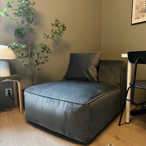 Dette er en dobbel sjeselong med luksuriøs nakkestøtte som er avtakbar og justerbar for høyden eller komforten din. Det har ikke noe å si om du er 2 meter høy eller liten her. Dette myke, strukturerte møbelet vil være din foretrukne sitteplass hver gang. Det er flott også for familier med noen få barn. Du vil derimot oppleve en kamp for å få sitte på den først.