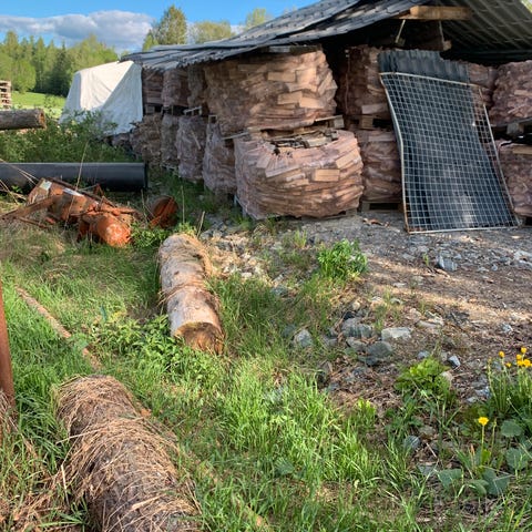 Fjorårets blandingsved 60 l sekk 120,- pr stk.