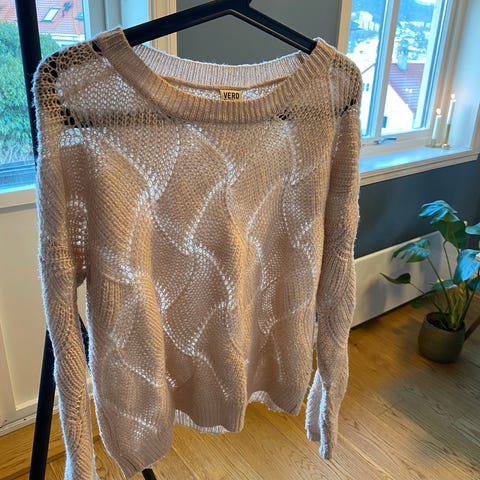 Fin hvit Red Label genser med mønster str S. Oppe ved den ene skulderen er det et lite parti med et par løse masker danner litt åpning. Siden genseren består av "hull" fra før er det ikke sikkert det legges så godt merke til. Men kan nok la seg fikse ved at man drar litt fra innsiden i trådene eller syr(?) Hentes eller sendes mot frakt.