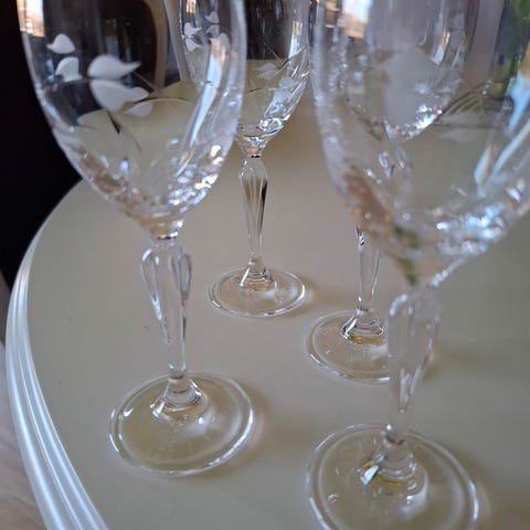 4 stk Derby rødvinsglass med olivenslipninger fra Hadeland i meget bra stand .