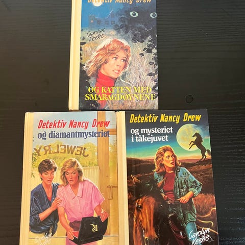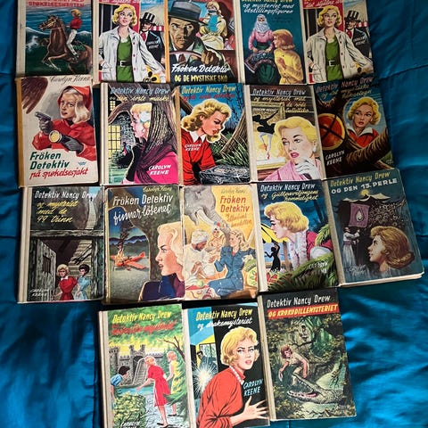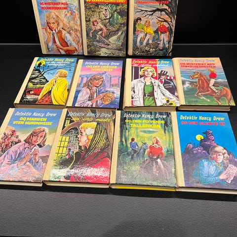 Nancy Drew bøker selges enten samlet for 100 kr eller 10 kr boka.