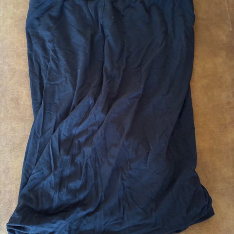 Mørk blå med sort strikk. Brukt én gang - så fremstår som nytt.