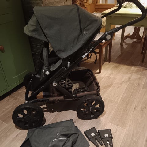 Barnevogn selges til rimelig pris. Den er godt brukt og har tydelige bruksspor. Plastikken på håndtaket er slitt og har delvis løsnet, og det finnes noe rust på enkelte deler. Dette er kosmetisk og påvirker ikke bruken, vognen er fortsatt fullt fungerende.