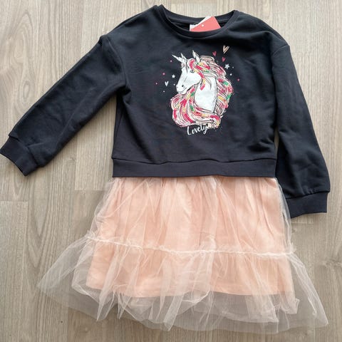Enhjørning / Unicorns Kosedress/ Lukket Badekåpe, og tøfler. Str 122/128. Tøfler str 33/34. Pent og meget lite brukt.