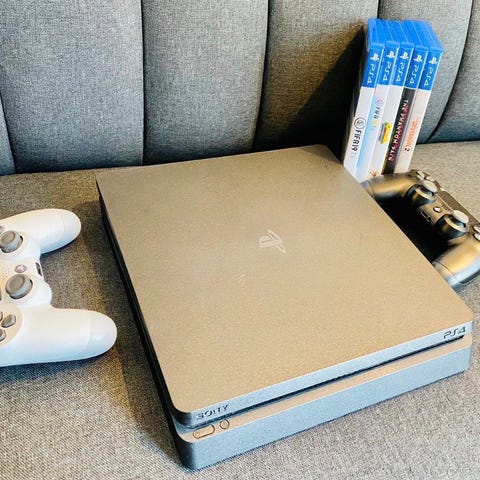 Playstation 4 slim. 1 TB Storage, 2 kontroller, 5 spill og Hodetelefoner