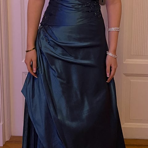 En nydelig kjole i fin farge, med sjal, brukt en gang, selges rimelig til 1200 kr. Kjøpt på Tina Ritzi.