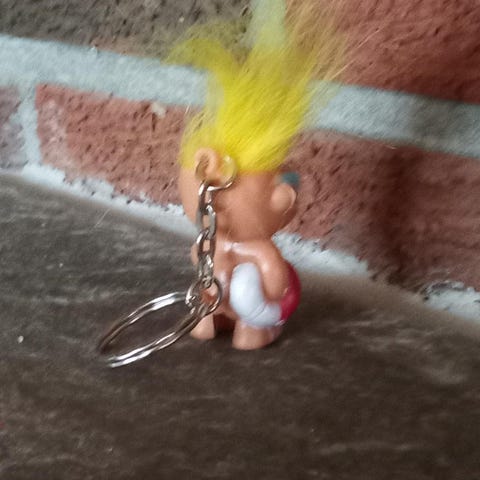 Høyde 8 cm uten hår. Merket Dam 1985 China.