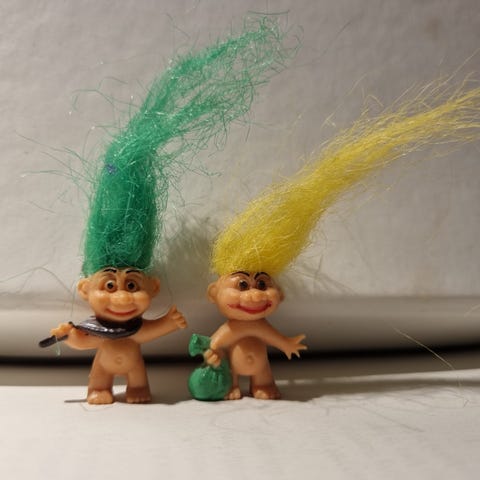 Lykketroll med nøkkelring. Har muligens fått en liten hårstuss en gang.