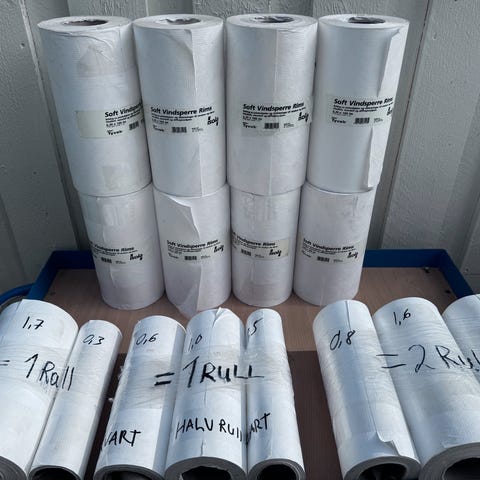Har 9 ruller som selges til 500,- pr stk.