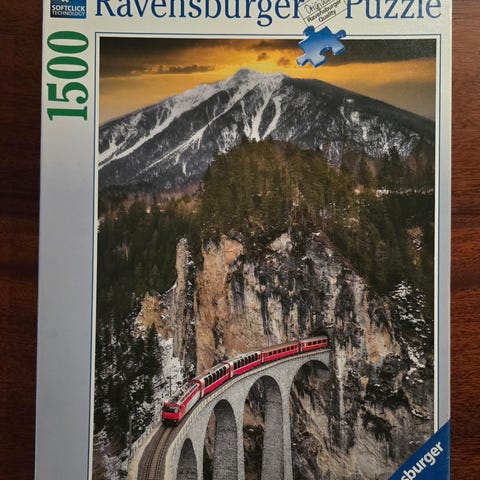 Puslespill med 1000 brikker. Jeg mener at ingen brikker mangler, men tør ikke garantere dette.