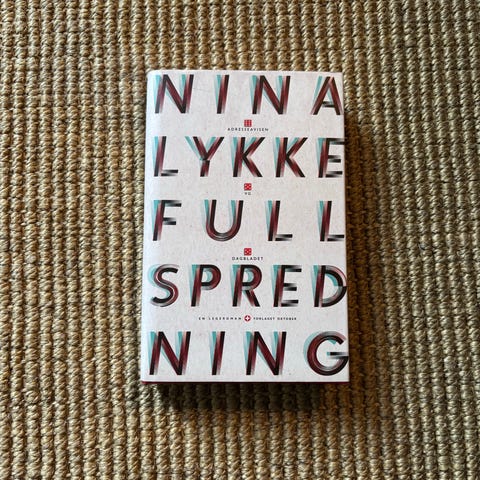 Full spredning av Nina Lykke. Fra Bokklubben, ikke lest.
