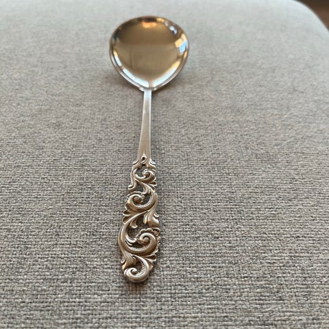 Søt tinn skje (syltetøy/sukker) som er merket TINN NM