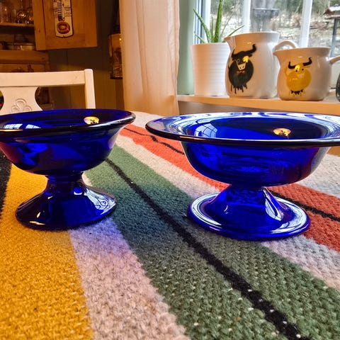 Dråpe i blått glass høyde 20 cm kr 300..Kjøper betaler frakt.