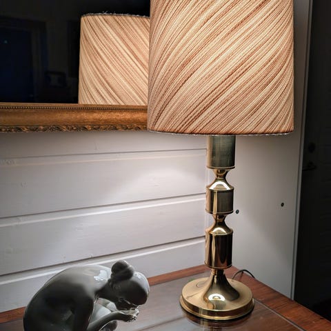 Messingfarget, bordlampe, 2048, 1960tallet, retro, vintage.