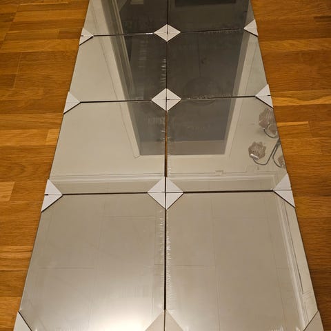 •Tilsammen 8 kvadratiske og 4 avrundede speilfliser.