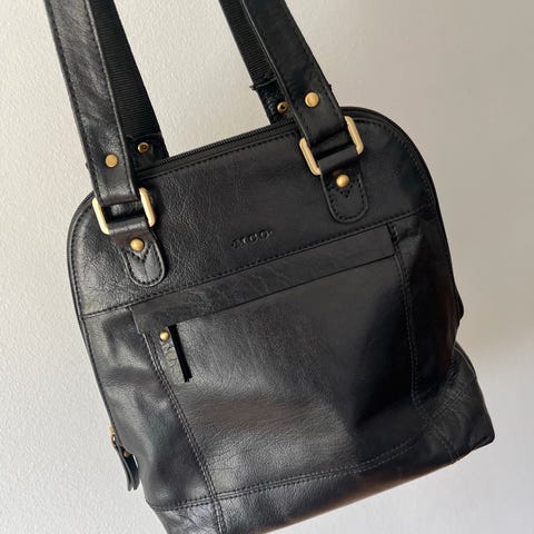 Gammel dokument veske i skinn, den er brukt godt og har noen bruks merker men alder tatt i betraktning så er den veldig bra holdt. Den er cognac farget har to skillevegger inni, den ene veggen er litt revnet på den ene siden. Det finnes et merke på utsiden fra ett skipsrederi, jeg vet ikke annet enn at min fars onkel hadde denne, og han døde lenge før jeg ble født. Sender mot porto