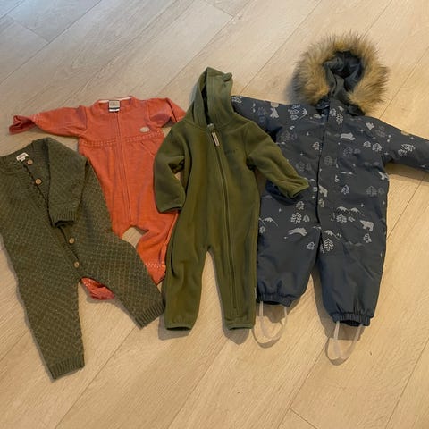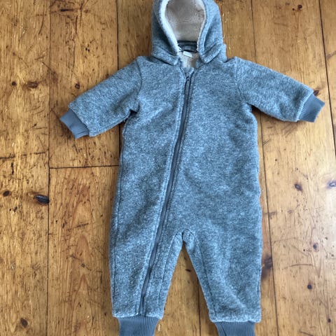 Ullbody og ullstillongs fra Name It i størrelse 74. Bodyen har en flekk på brystet.