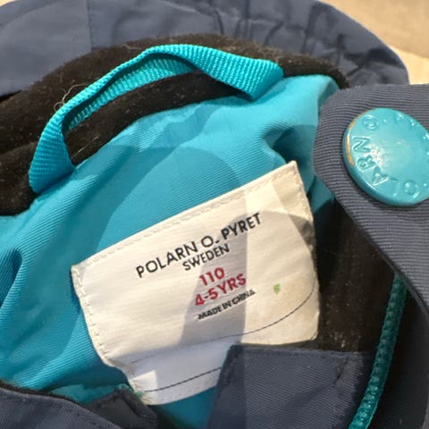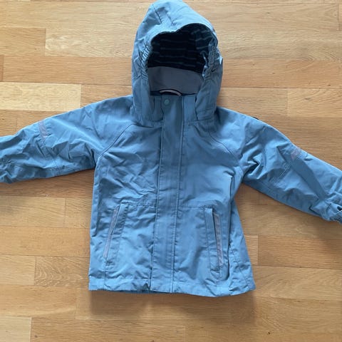 Goretex jakke fra Polarn o pyret str 110 selges for kr 200. Lys/mellomblå farge. Litt skitraseen ved kragen. Se bilder. Er ubetydelig for bruken. God tilstand ellers.