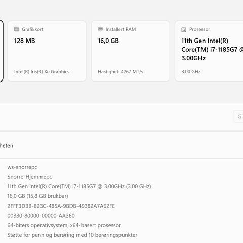 - Oppgradert nettverkskort fra Killer til Intel i 2019.