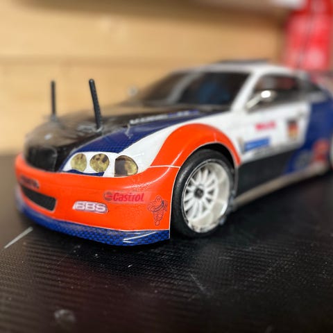 Sintech 1/8 Nitro RC-Bil selges klar til å kjøre, går rundt 80km timen. Ladebatterier i fjernkontroll og i bil. USB ladbar glødestarter med 1 AA 2300mAH ladebatteri. Mangler bare drivstoff, kan følge med. Hitec ladertil fjernkontroll og mottaker følger med. Montert K1 filter som ikke har risiko for stein og lignende å ødelegge motor. Bilen tåler regnvær og noe vann. Mottager går på LiPolymer 7,4V 800mA batteri og nytt K1 filter er montert(ikke på bilder). PC vifte til motor monteres senere, fordel når det er varmt vær.