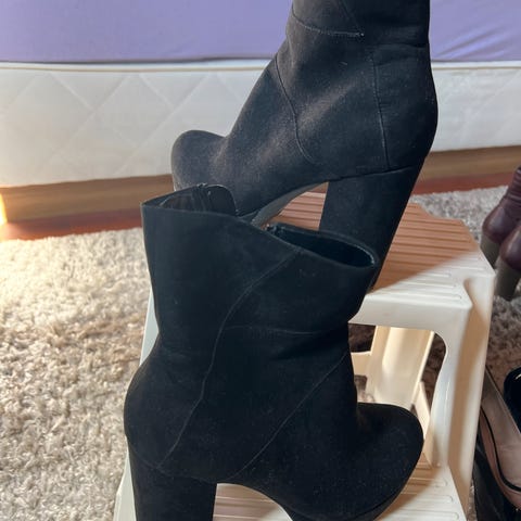 Skoene er svarte og har en solid hæl for ekstra støtte. De er laget i et materiale som gir en elegant finish. Passer til både formelle og uformelle anledninger.