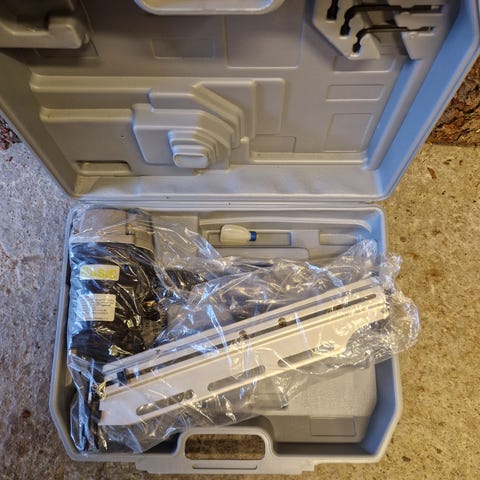 Spikrer pistol til gulvbor 1 1\2" og 2 " Krampe, brukt på ca 2000 m2 så den er litt brukt, det du ser på bildet følger med, ny pris 2900 kr selges for 1400 kr