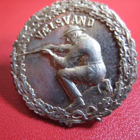 Skytterlaget Riflen i Drammen - skarpskyttermerke sølv og bronse nålemerker