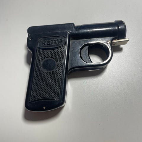 Brevåpner i tinn antar fra 60-70 tallet med ekstra verktøy i skaftet og original eske.
