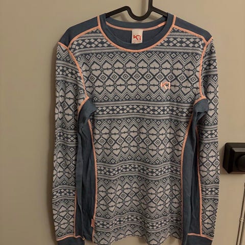 100% ULL KARI TRAA. Fin BLÅ-GRÅ genser.