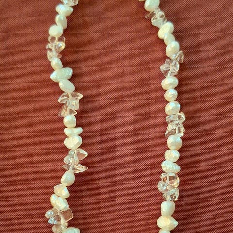 Kjede av håndlagde glassperler . L= ca 54 cm.