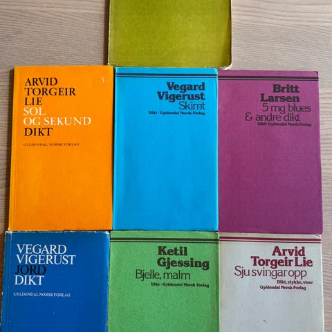 Et utvalg diktsamlinger av norske forfattere.