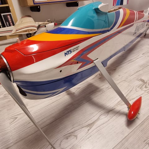 Compass 50 delehelikopter selges uten motoren på bildet. Har ikke sjekket om akslinger er rette. Ser at det er litt delaminering i rammesidene ved halebomfestet. Canopy er hel og grei.