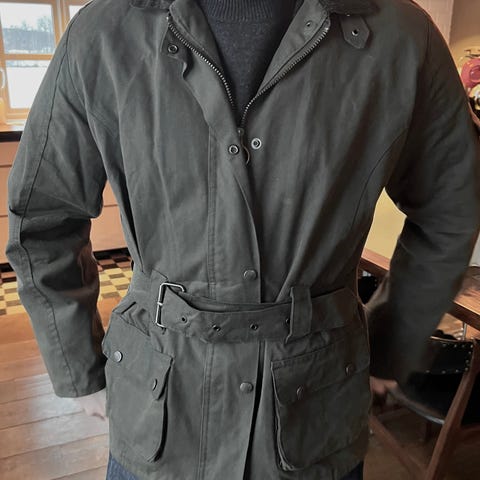 En stilig og behagelig vokset jakke kjøpt hos House Of Scotland, Frogner, Oslo (se kvitteringen). Veldig lite brukt, nesten ny.