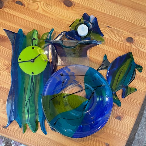 3 stk sommerfugler i håndlaget glass til vindu