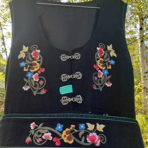 Blå festdrakt leies ut for 1500,- Pr. Døgn. Depositum på 2000,- som tilbakebetales når festdrakten returneres i samme stand som den ble levert ut.