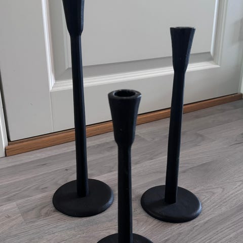 4 stk. Sorte Lysestaker for kronelys/stearinlys/ håndlaga og unike