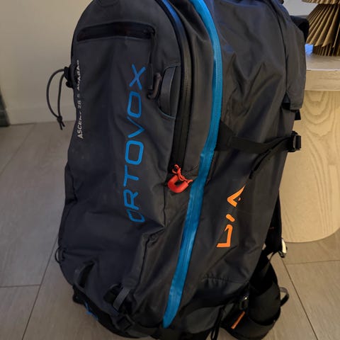 Skipakke med randoneeski (164), sko (25/25,5 = Str 39/40), staver, feller, skredpakke (skredsøker, søkestang og spade).