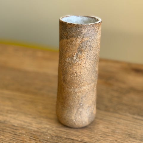 Liten rustikk blomstervase, beige med struktur, høyde 25 cm, 8x8 på toppen
