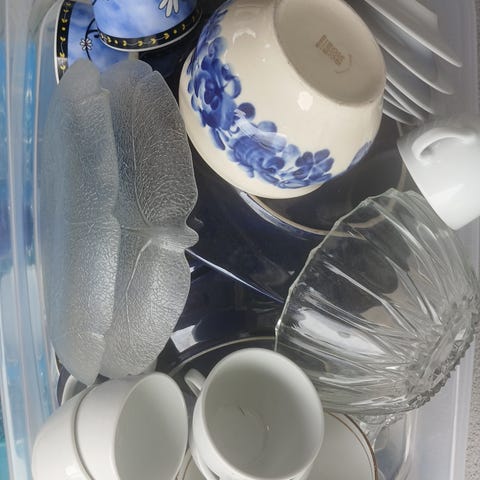 2 stk eggeglass, 2 stk serviettringer og tannstikkerholder i håndmalt tre fra 1995 gis bort.