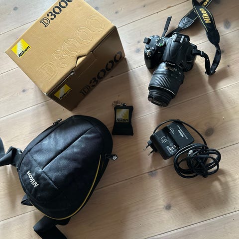 Nikon D3000 selges da det omtrent ikke blir brukt hos meg og fremstår som lite brukt.