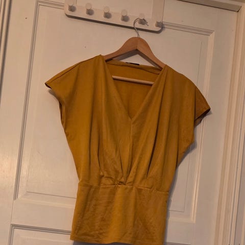 Myk og fin bluse fra Sisley. Lite brukt, noen få bruksspor, se fotos. Kjøpt i Venezia 2022. Selges da den blir lite brukt. Foto 1-2 gir riktig farge. Kan sendes mot porto.