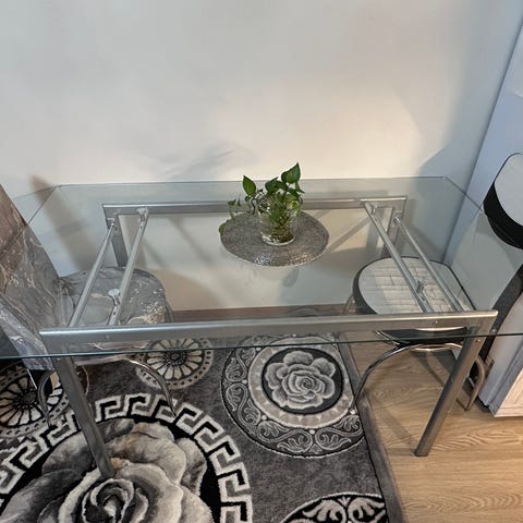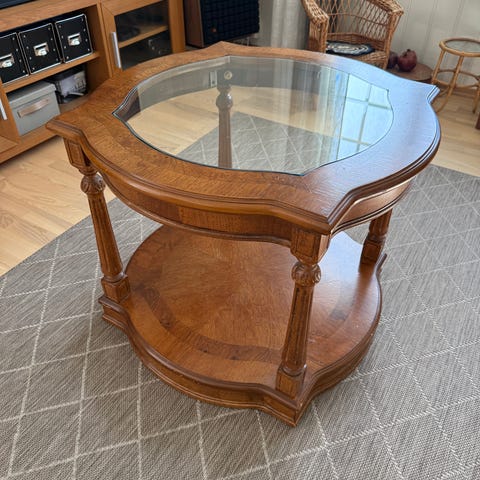 Flott glass bord med klart glass øverst og sort glass hylle under 70x70x50 BxLxH