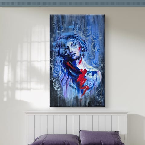 Maleriet er malt i akrylteknikk og mixed media på 3D lerret.
