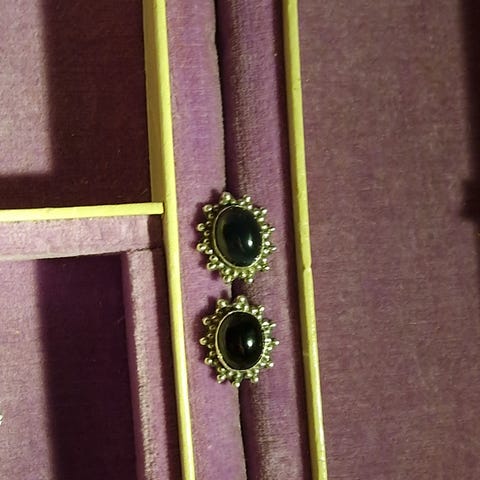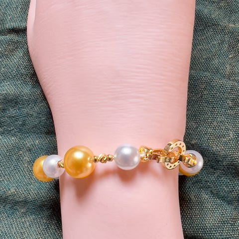 flertrådet perlearmbånd ofte referert til som et statement-smykke. Smykket består av mange fine tråder med små, iriserende perler som gir en flerfarget glans, selv om den dominerende fargen ser mørk ut (svart eller mørk blå).
