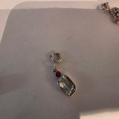 Perletrådene er samlet i elegante, kjegleformede endestykker i sølvfarget metall.