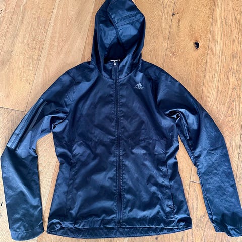 Fin og lett løpejakke fra Adidas. To lommer foran og en lomme bak.
