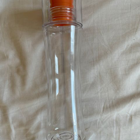 Meget praktisk metalflaske med stor lokk. Lett og liten. Søler ikke.